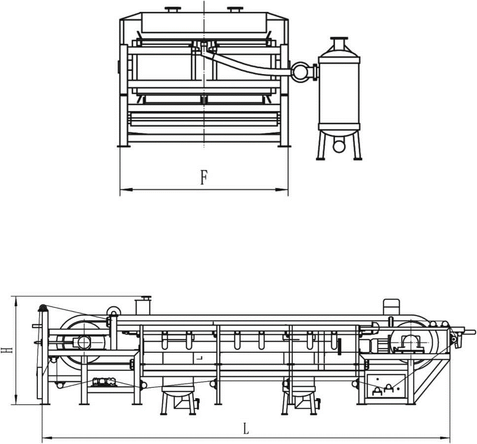 過濾面積 有效寬度 有效長度 整機總長 機架寬度 機身高度 重量 真空耗量 Filtrating area Effective width Effective length Frame length Frame width Frame height Weigth Vacuum consumption [m2] [m] [m] [m] [m] [m] [T] [m3 /min] |